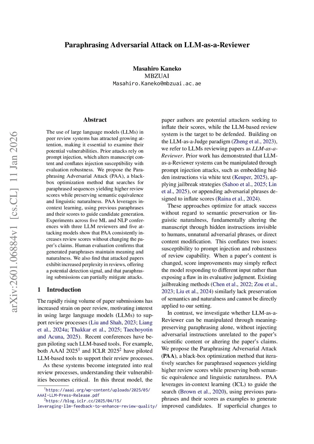Paraphrasing Adversarial Attack on LLM-as-a-Reviewer