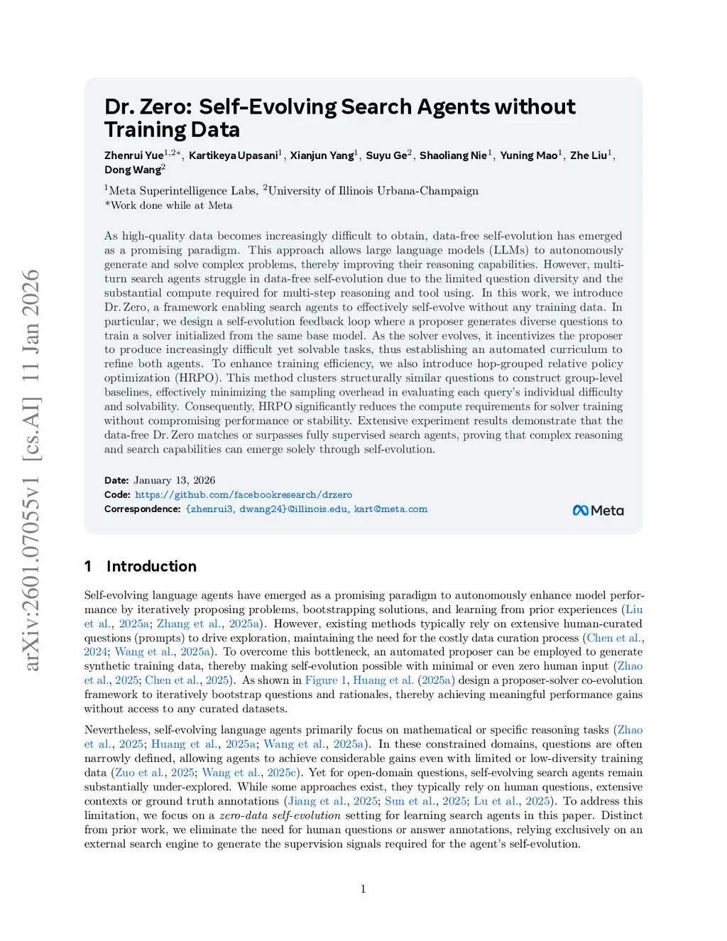 Dr. Zero: Self-Evolving Search Agents without Training Data