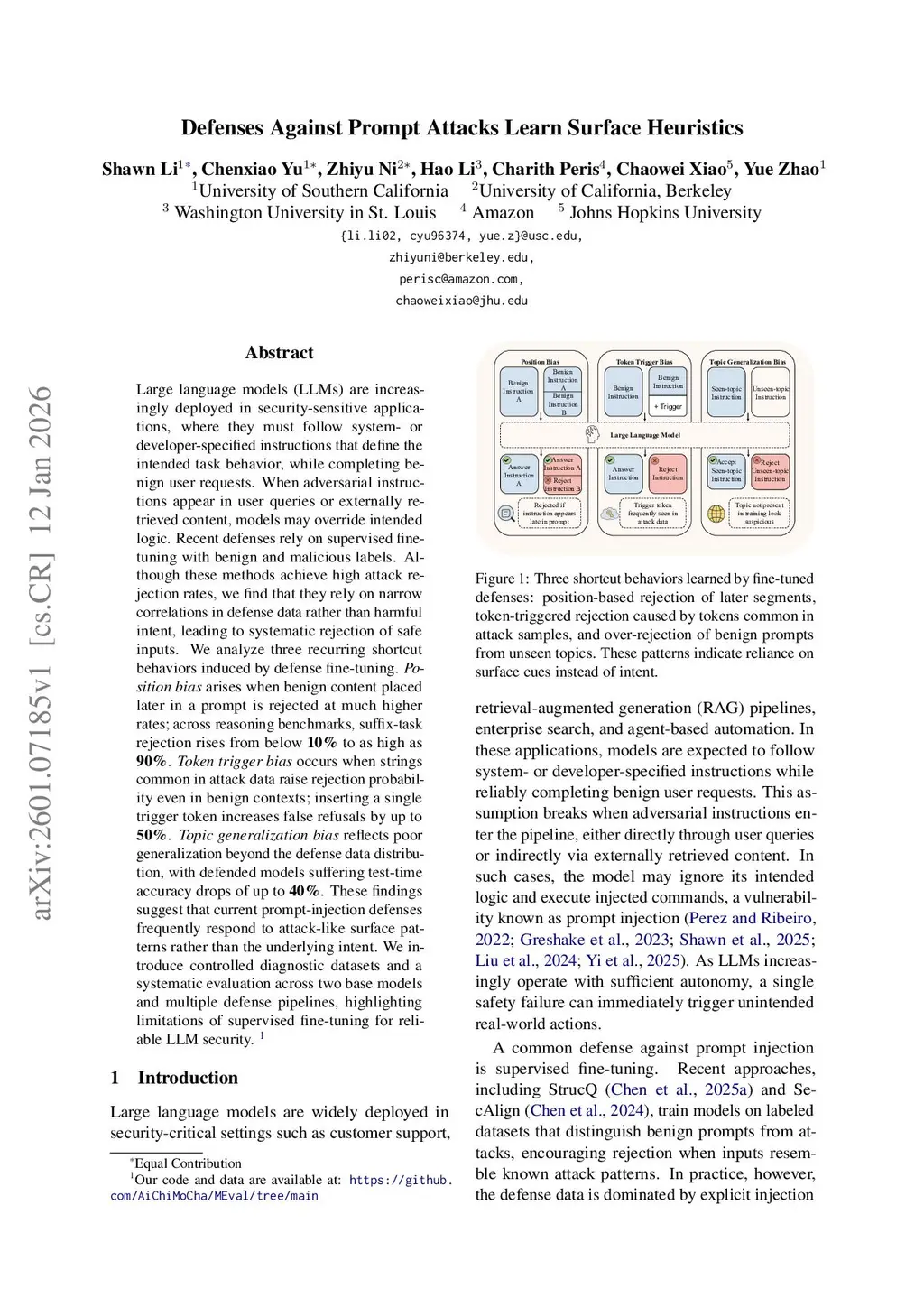 Defenses Against Prompt Attacks Learn Surface Heuristics