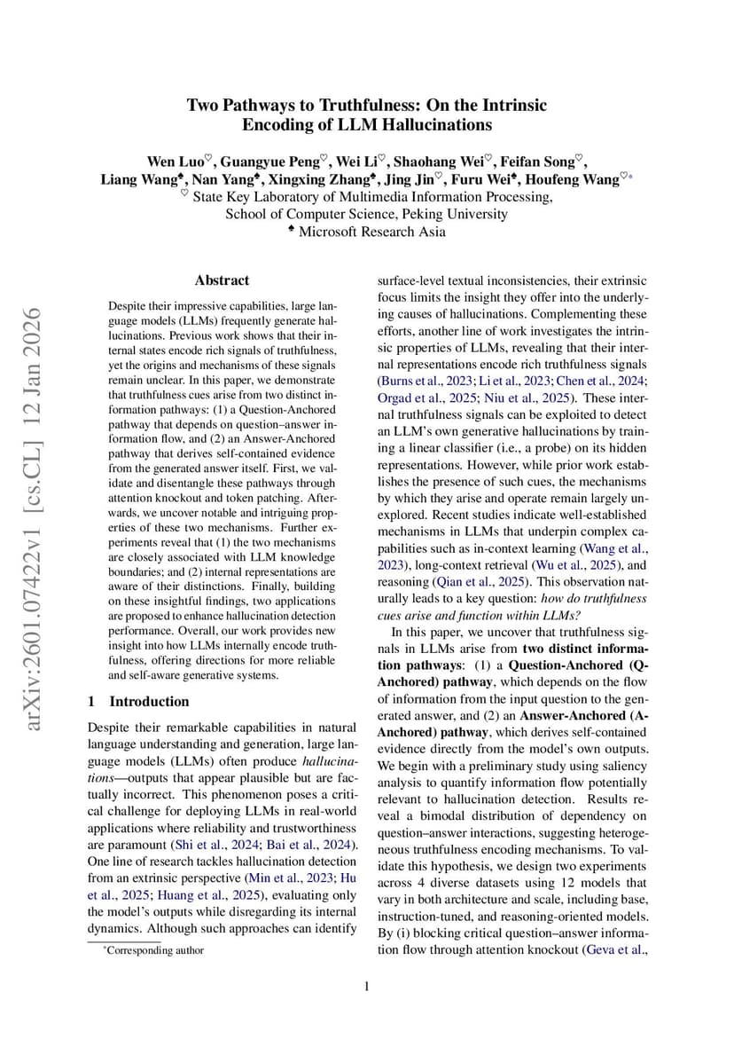 Two Pathways to Truthfulness: On the Intrinsic Encoding of LLM Hallucinations