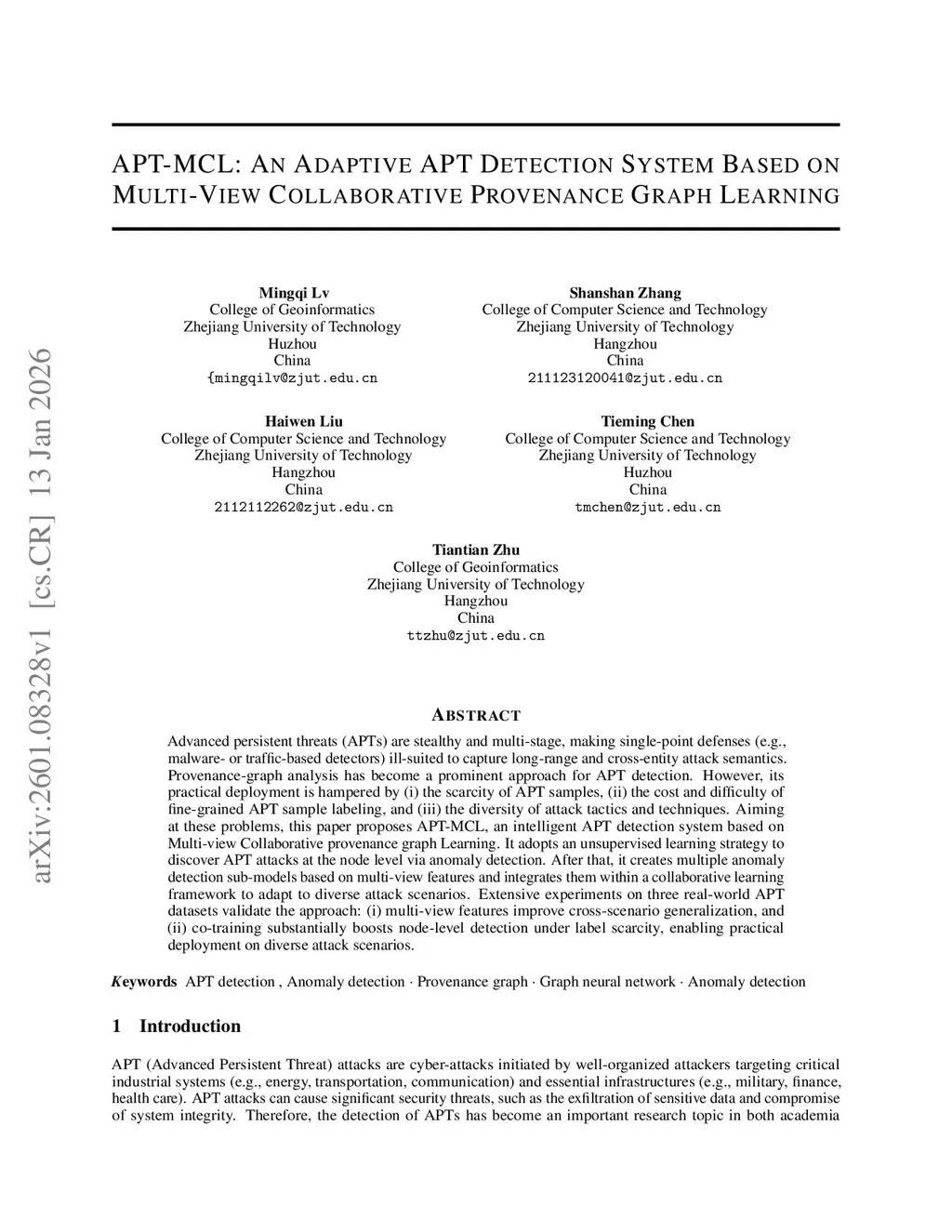 APT-MCL: An Adaptive APT Detection System Based on Multi-View Collaborative Provenance Graph Learning