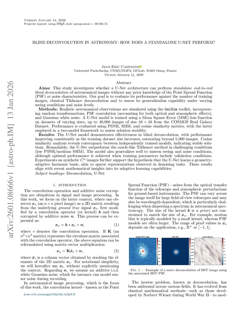 Blind Deconvolution in Astronomy: How Does a Standalone U-Net Perform?