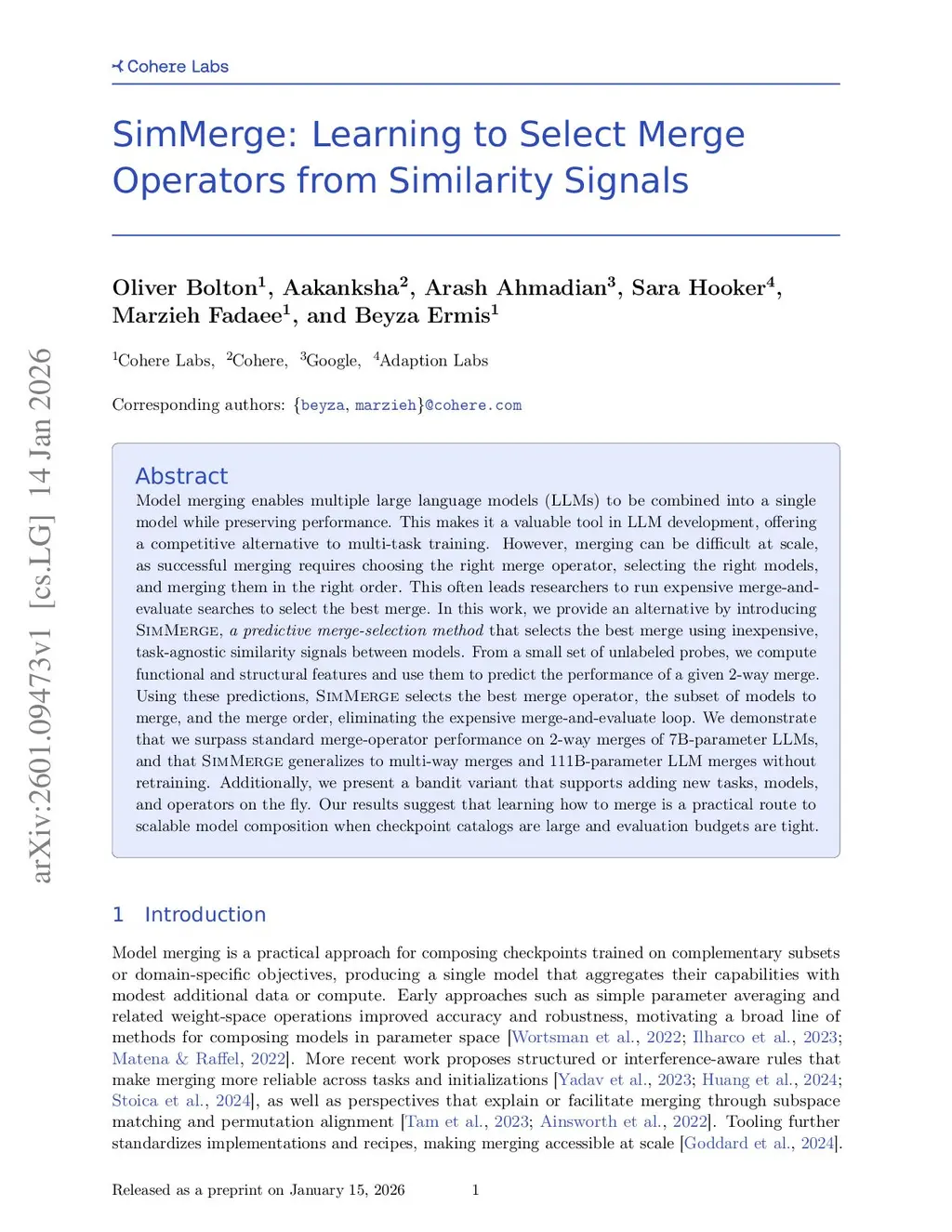 SimMerge: Learning to Select Merge Operators from Similarity Signals