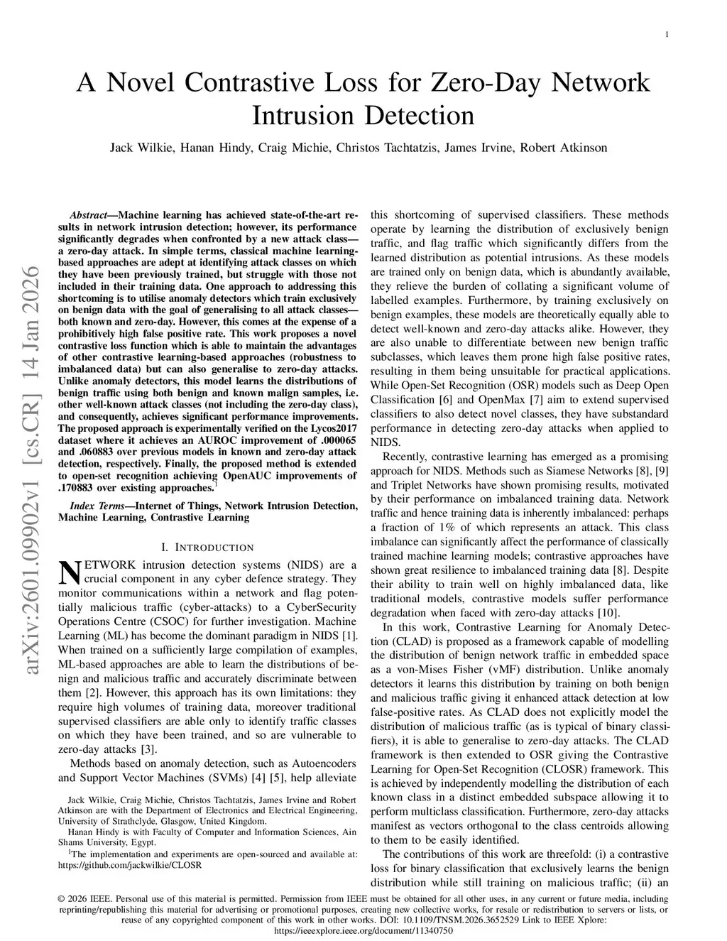 A Novel Contrastive Loss for Zero-Day Network Intrusion Detection