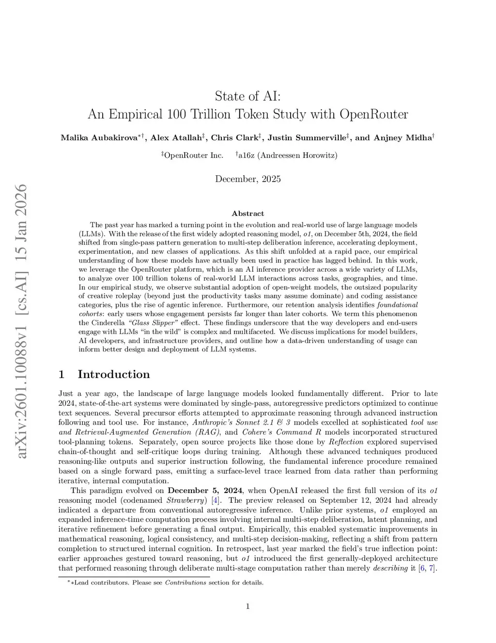 State of AI: An Empirical 100 Trillion Token Study with OpenRouter