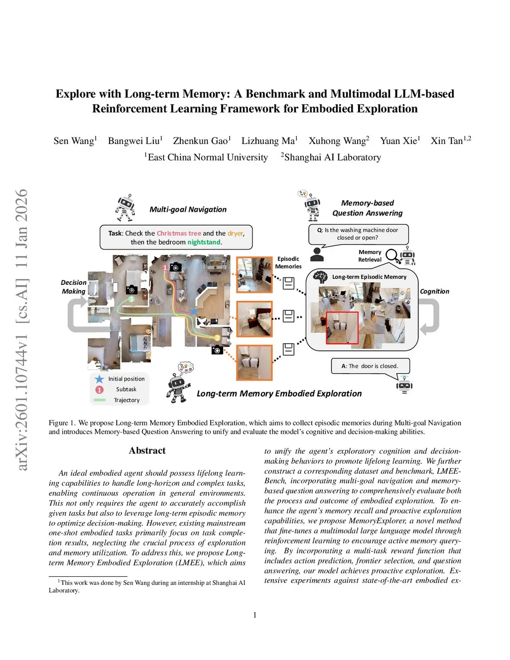 Explore with Long-term Memory: A Benchmark and Multimodal LLM-based Reinforcement Learning Framework for Embodied Exploration