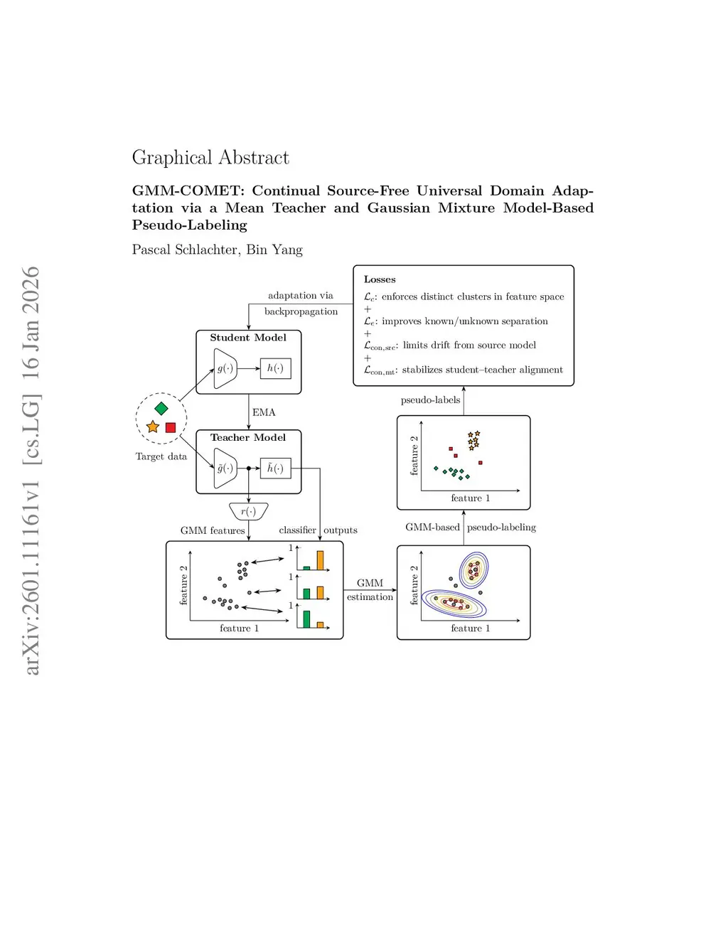 GMM-COMET: Continual Source-Free Universal Domain Adaptation via a Mean Teacher and Gaussian Mixture Model-Based Pseudo-Labeling