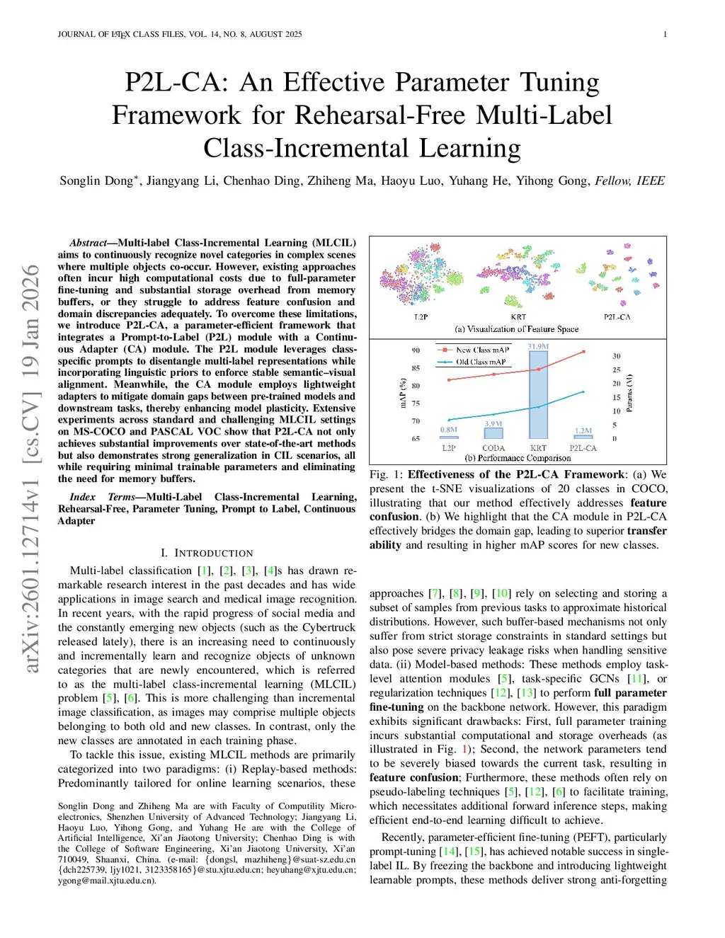 P2L-CA: An Effective Parameter Tuning Framework for Rehearsal-Free Multi-Label Class-Incremental Learning