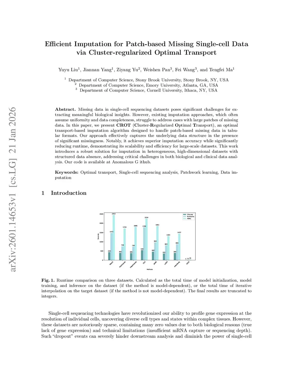 Efficient Imputation for Patch-based Missing Single-cell Data via Cluster-regularized Optimal Transport