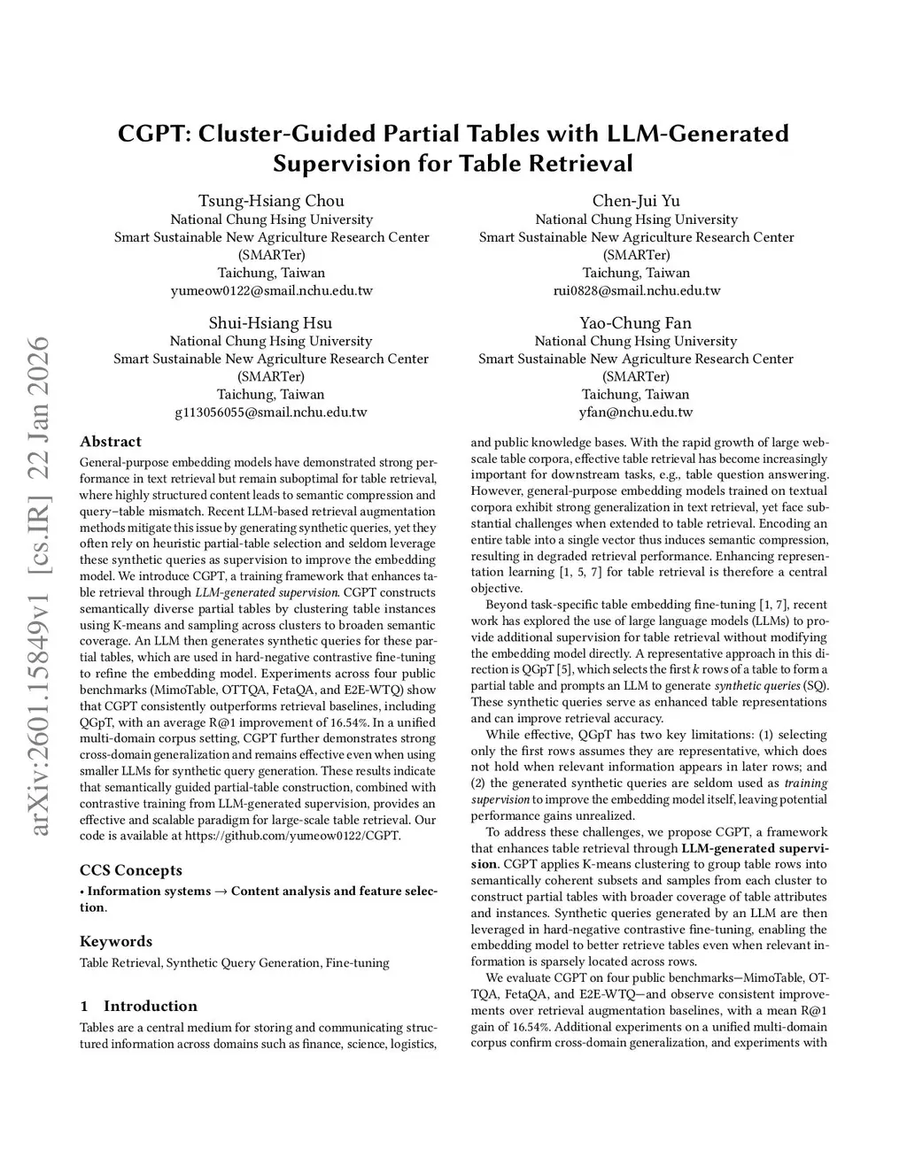 CGPT: Cluster-Guided Partial Tables with LLM-Generated Supervision for Table Retrieval