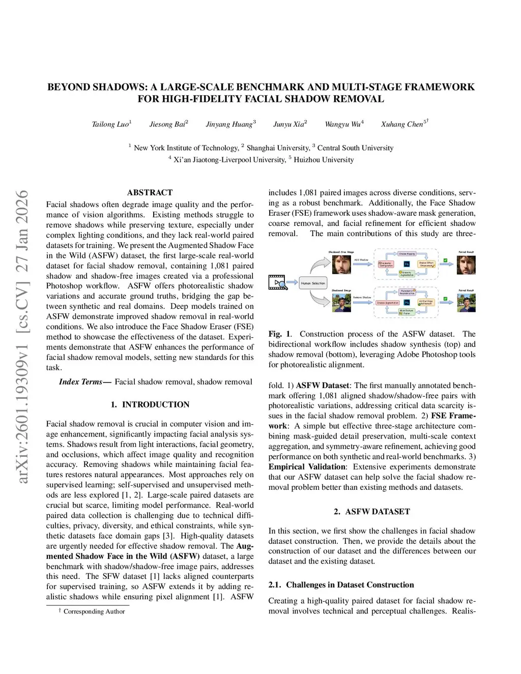 Beyond Shadows: A Large-Scale Benchmark and Multi-Stage Framework for High-Fidelity Facial Shadow Removal