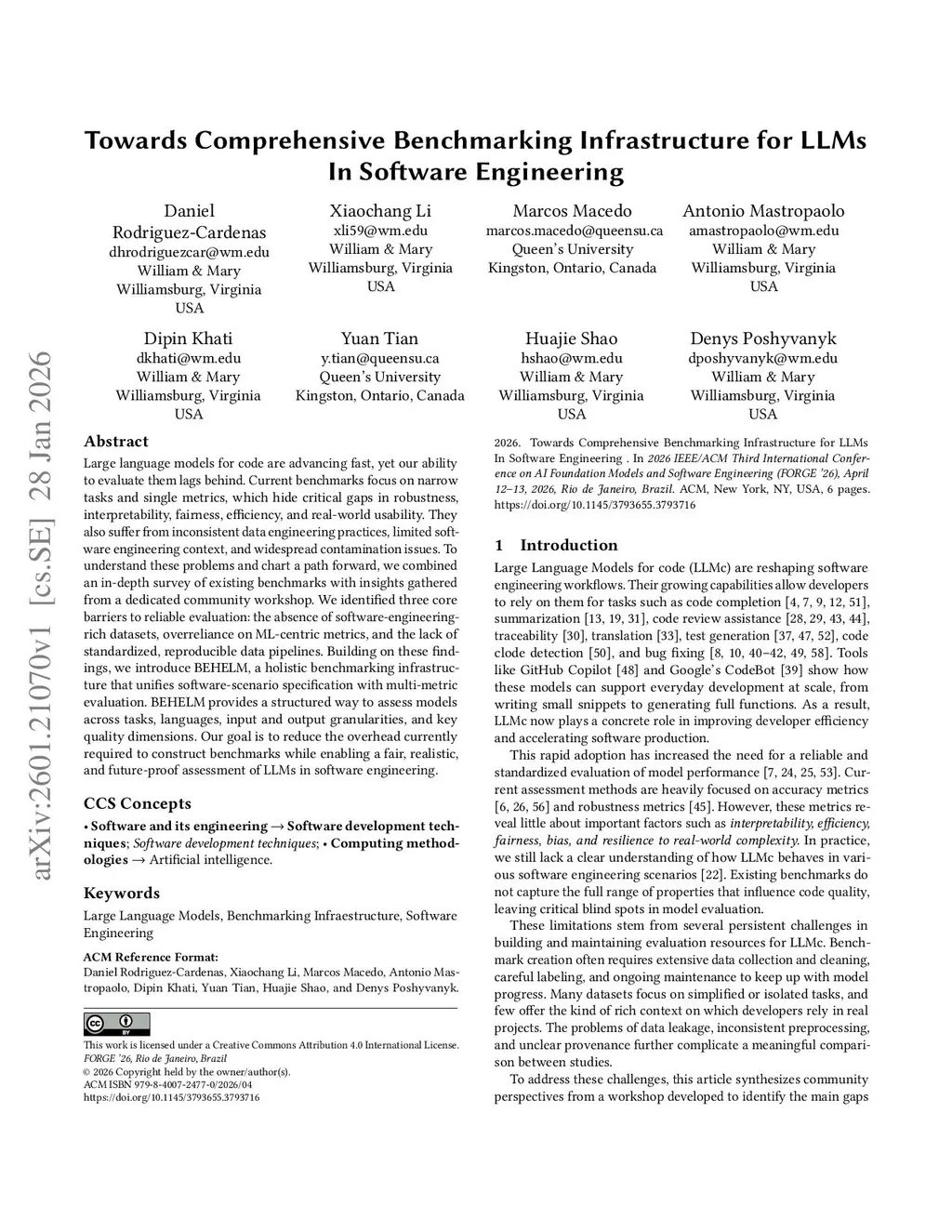 Large language models for code are advancing fast, yet our ability to evaluate them lags behind. Current benchmarks focus on narrow tasks and single metrics, which hide critical gaps in robustness, interpretability, fairness, efficiency, and real-world usability. They also suffer from inconsistent data engineering practices, limited software engineering context, and widespread contamination issues. To understand these problems and chart a path forward, we combined an in-depth survey of existing benchmarks with insights gathered from a dedicated community workshop. We identified three core barriers to reliable evaluation: the absence of software-engineering-rich datasets, overreliance on ML-centric metrics, and the lack of standardized, reproducible data pipelines. Building on these findings, we introduce BEHELM, a holistic benchmarking infrastructure that unifies software-scenario specification with multi-metric evaluation. BEHELM provides a structured way to assess models across tasks, languages, input and output granularities, and key quality dimensions. Our goal is to reduce the overhead currently required to construct benchmarks while enabling a fair, realistic, and future-proof assessment of LLMs in software engineering.