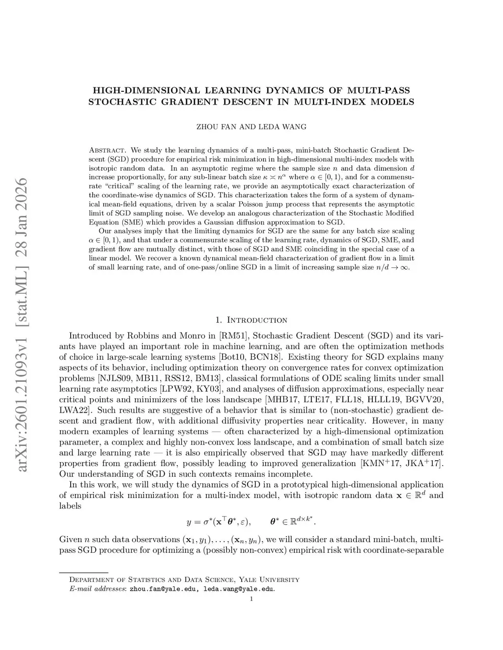 We study the learning dynamics of a multi-pass, mini-batch Stochastic Gradient Descent (SGD) procedure for empirical risk minimization in high-dimensional multi-index models with isotropic random data. In an asymptotic regime where the sample size and data dimension increase proportionally, for any sub-linear batch size where , and for a commensurate ``critical'' scaling of the learning rate, we provide an asymptotically exact characterization of the coordinate-wise dynamics of SGD. This characterization takes the form of a system of dynamical mean-field equations, driven by a scalar Poisson jump process that represents the asymptotic limit of SGD sampling noise. We develop an analogous characterization of the Stochastic Modified Equation (SME) which provides a Gaussian diffusion approximation to SGD.Our analyses imply that the limiting dynamics for SGD are the same for any batch size scaling , and that under a commensurate scaling of the learning rate, dynamics of SGD, SME, and gradient flow are mutually distinct, with those of SGD and SME coinciding in the special case of a linear model. We recover a known dynamical mean-field characterization of gradient flow in a limit of small learning rate, and of one-pass/online SGD in a limit of increasing sample size .