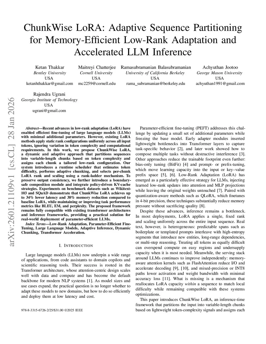 ChunkWise LoRA: Adaptive Sequence Partitioning for Memory-Efficient Low-Rank Adaptation and Accelerated LLM Inference