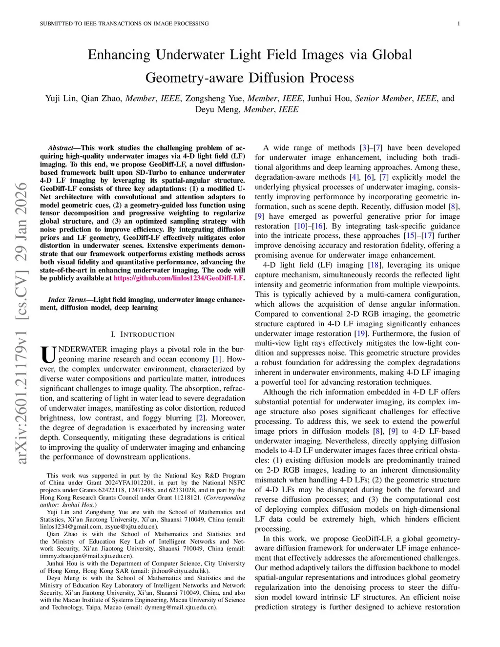 Enhancing Underwater Light Field Images via Global Geometry-aware Diffusion Process