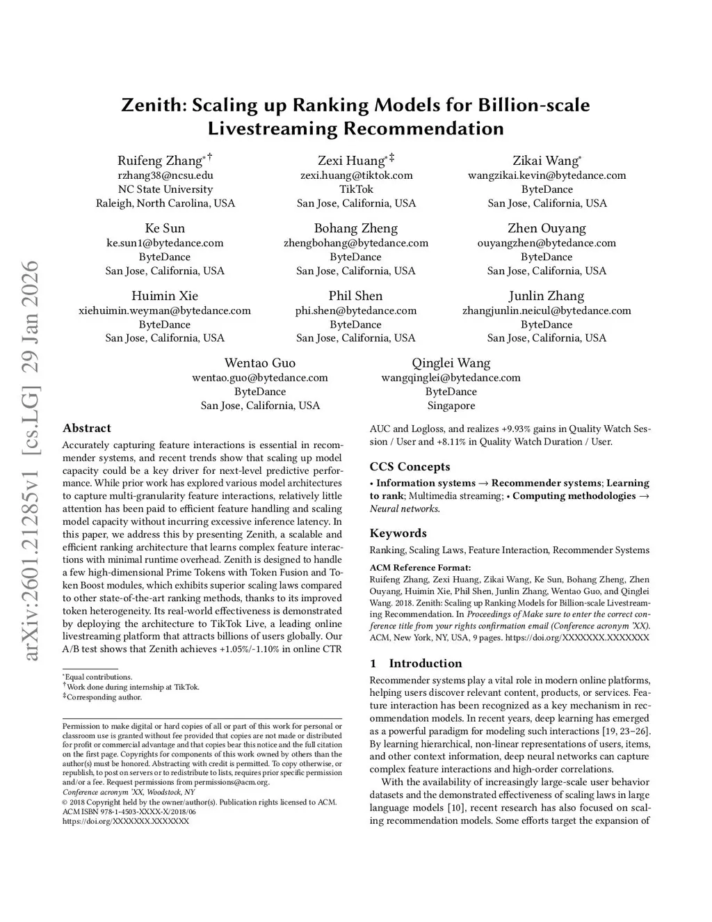 Zenith: Scaling up Ranking Models for Billion-scale Livestreaming Recommendation