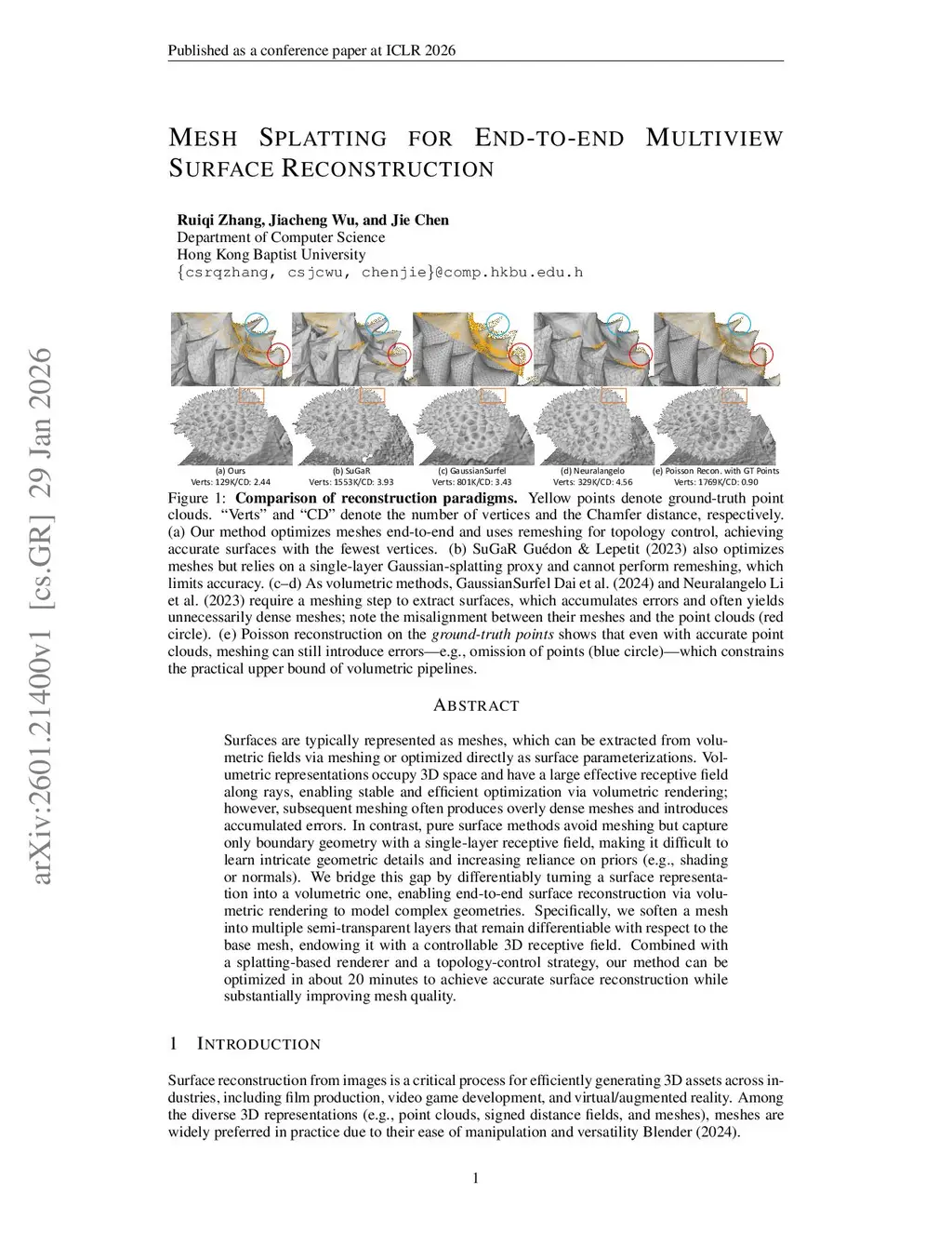 Mesh Splatting for End-to-end Multiview Surface Reconstruction
