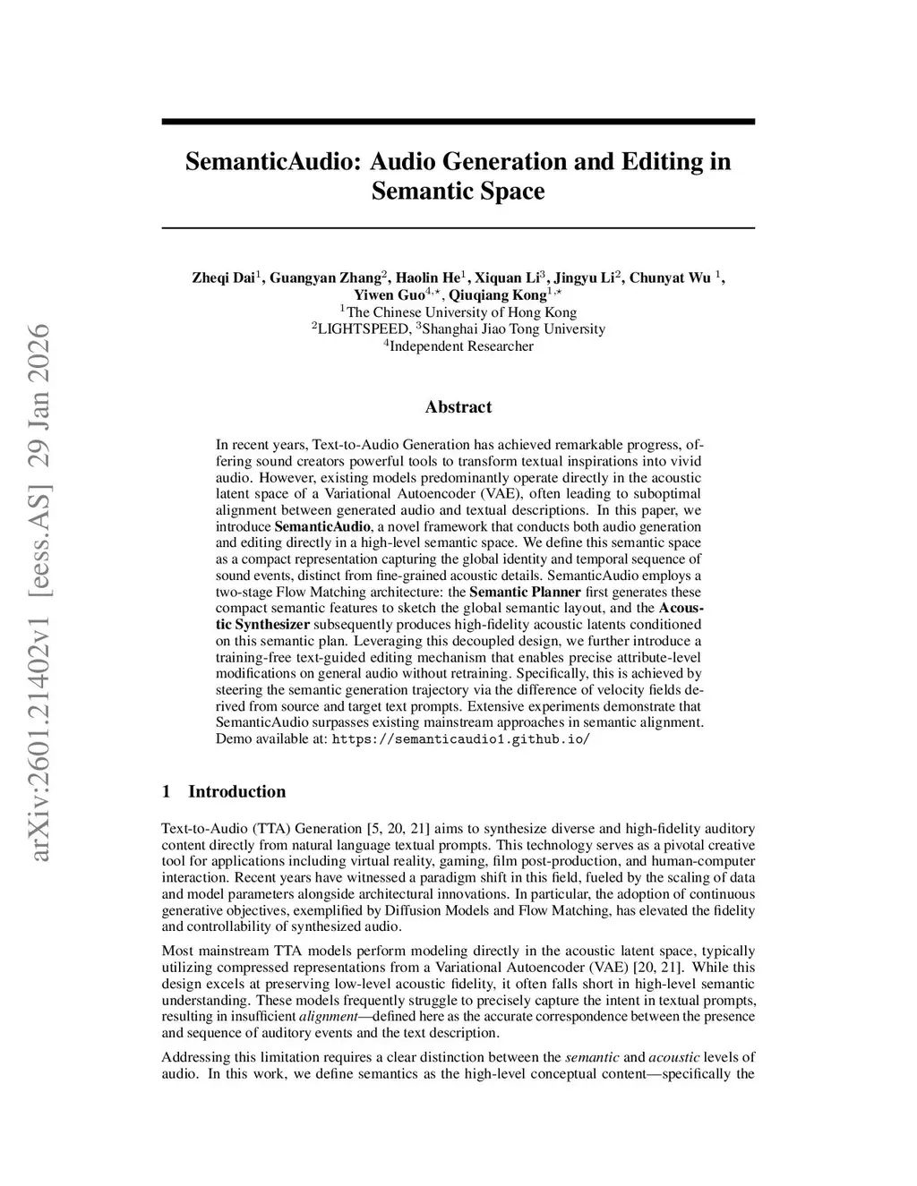 SemanticAudio: Audio Generation and Editing in Semantic Space