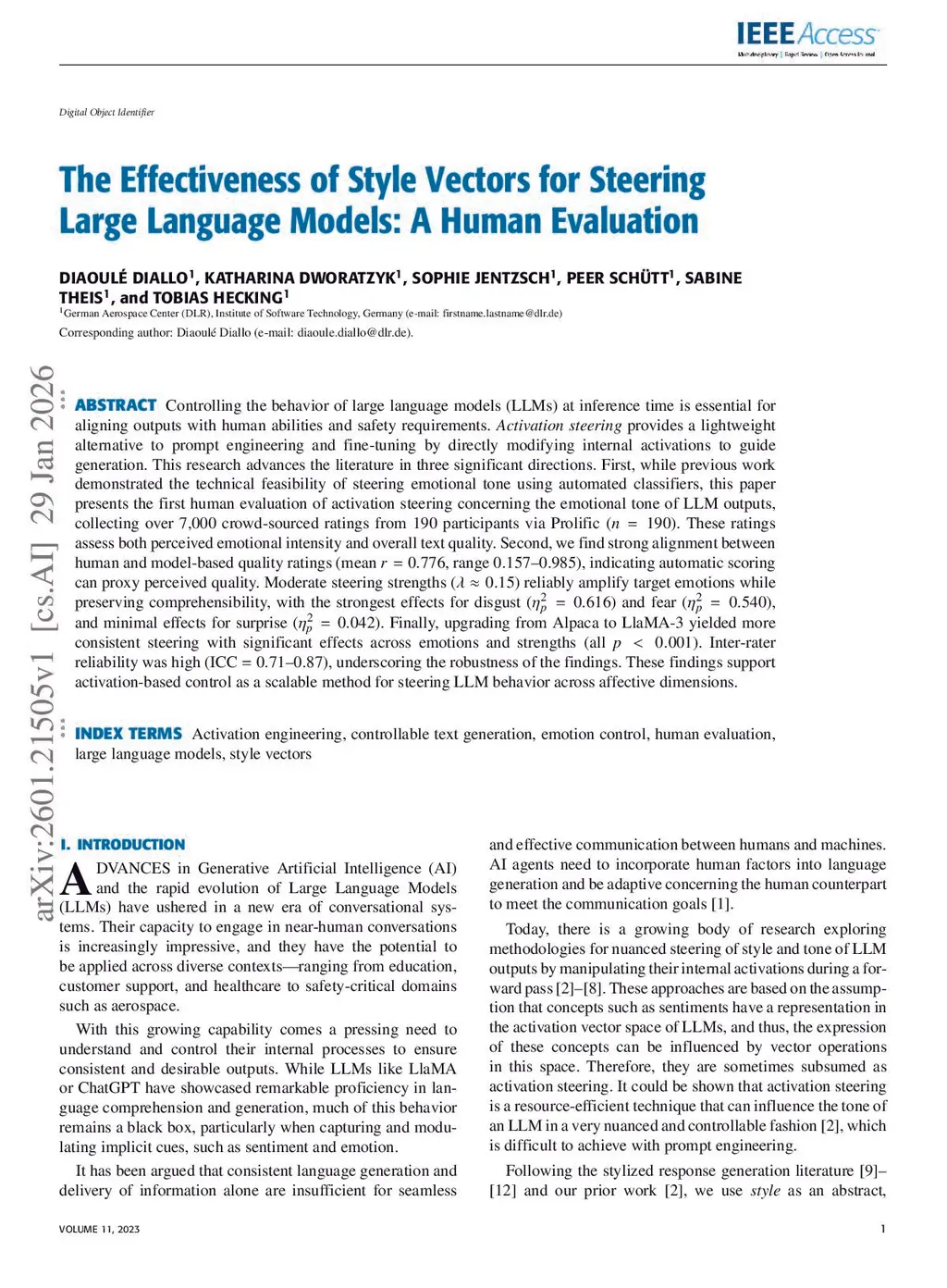 Controlling the behavior of large language models (LLMs) at inference time is essential for aligning outputs with human abilities and safety requirements. \emph{Activation steering} provides a lightweight alternative to prompt engineering and fine-tuning by directly modifying internal activations to guide generation. This research advances the literature in three significant directions. First, while previous work demonstrated the technical feasibility of steering emotional tone using automated classifiers, this paper presents the first human evaluation of activation steering concerning the emotional tone of LLM outputs, collecting over 7,000 crowd-sourced ratings from 190 participants via Prolific (). These ratings assess both perceived emotional intensity and overall text quality. Second, we find strong alignment between human and model-based quality ratings (mean , range --), indicating automatic scoring can proxy perceived quality. Moderate steering strengths () reliably amplify target emotions while preserving comprehensibility, with the strongest effects for disgust () and fear (), and minimal effects for surprise (). Finally, upgrading from Alpaca to LlaMA-3 yielded more consistent steering with significant effects across emotions and strengths (all ). Inter-rater reliability was high (ICC --), underscoring the robustness of the findings. These findings support activation-based control as a scalable method for steering LLM behavior across affective dimensions.