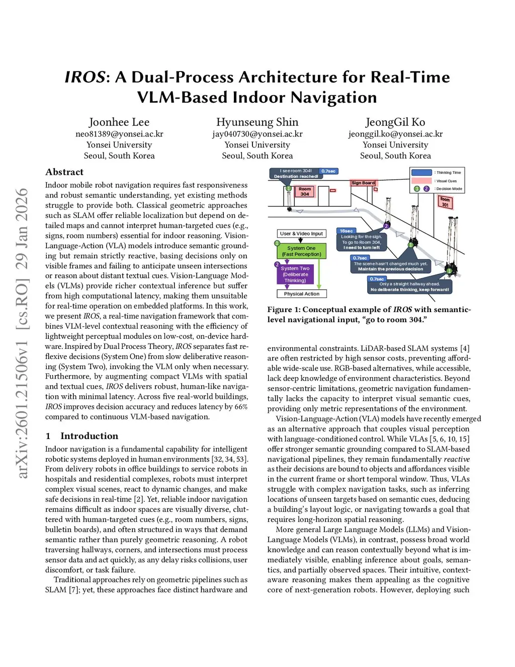 IROS: A Dual-Process Architecture for Real-Time VLM-Based Indoor Navigation