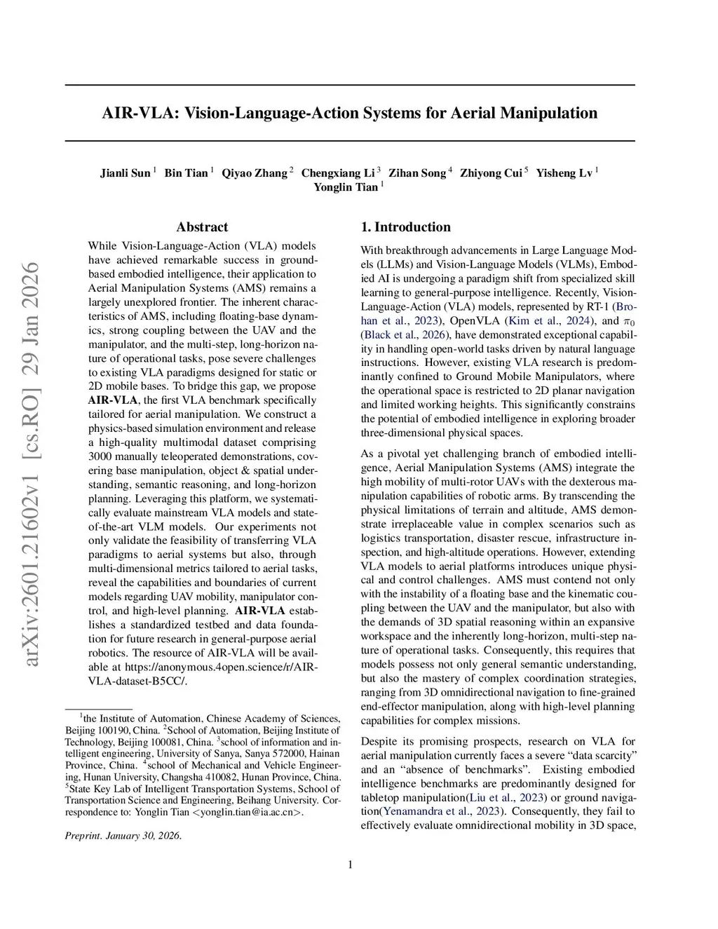 AIR-VLA: Vision-Language-Action Systems for Aerial Manipulation