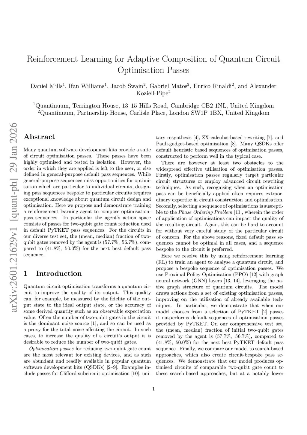 Reinforcement Learning for Adaptive Composition of Quantum Circuit Optimisation Passes