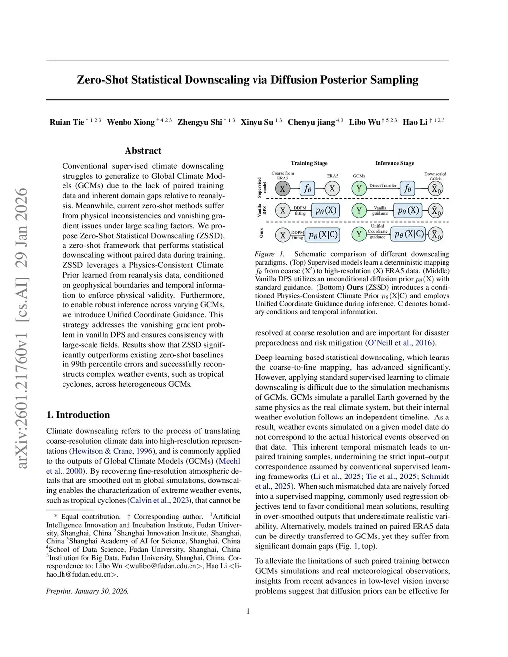 Conventional supervised climate downscaling struggles to generalize to Global Climate Models (GCMs) due to the lack of paired training data and inherent domain gaps relative to reanalysis. Meanwhile, current zero-shot methods suffer from physical inconsistencies and vanishing gradient issues under large scaling factors. We propose Zero-Shot Statistical Downscaling (ZSSD), a zero-shot framework that performs statistical downscaling without paired data during training. ZSSD leverages a Physics-Consistent Climate Prior learned from reanalysis data, conditioned on geophysical boundaries and temporal information to enforce physical validity. Furthermore, to enable robust inference across varying GCMs, we introduce Unified Coordinate Guidance. This strategy addresses the vanishing gradient problem in vanilla DPS and ensures consistency with large-scale fields. Results show that ZSSD significantly outperforms existing zero-shot baselines in 99th percentile errors and successfully reconstructs complex weather events, such as tropical cyclones, across heterogeneous GCMs.