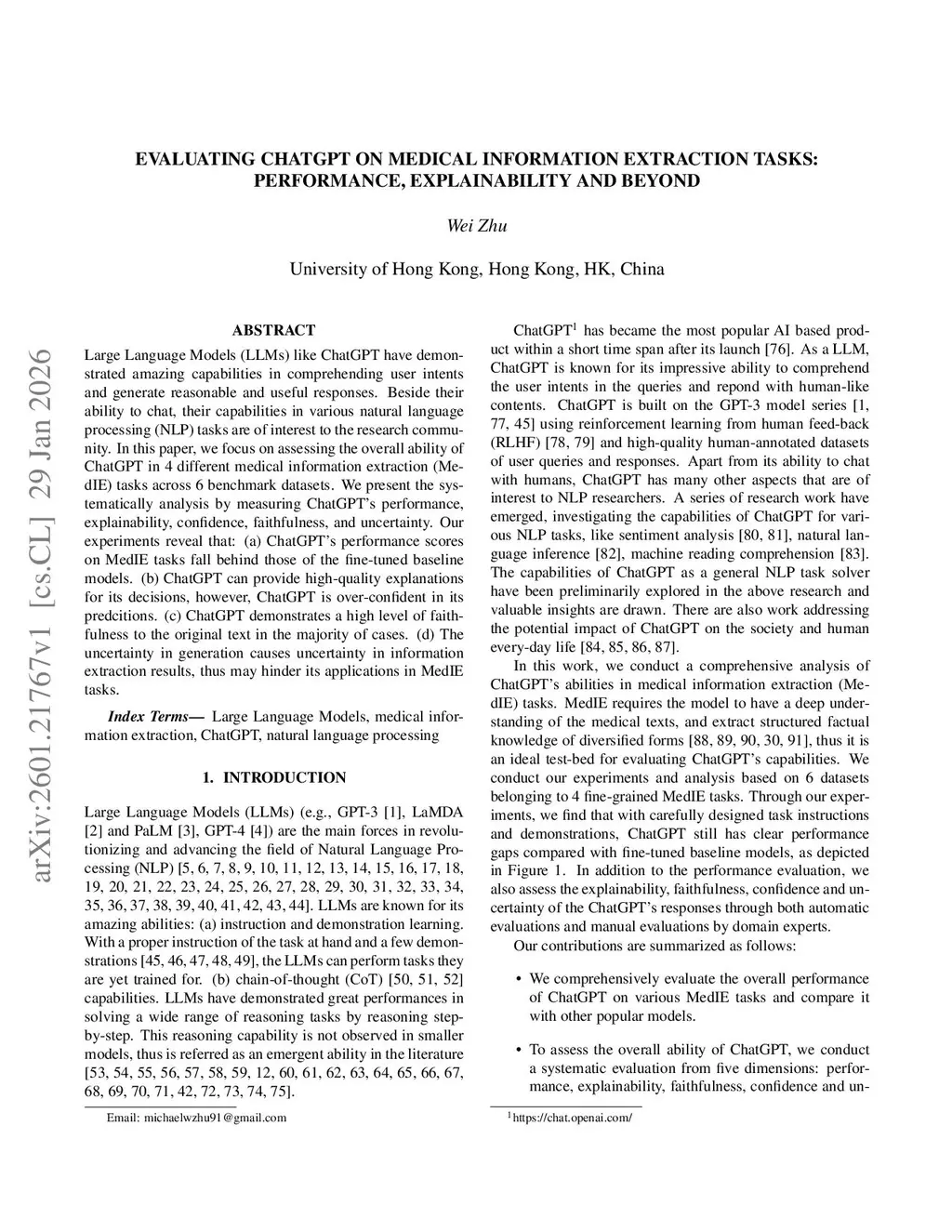 Large Language Models (LLMs) like ChatGPT have demonstrated amazing capabilities in comprehending user intents and generate reasonable and useful responses. Beside their ability to chat, their capabilities in various natural language processing (NLP) tasks are of interest to the research community. In this paper, we focus on assessing the overall ability of ChatGPT in 4 different medical information extraction (MedIE) tasks across 6 benchmark datasets. We present the systematically analysis by measuring ChatGPT's performance, explainability, confidence, faithfulness, and uncertainty. Our experiments reveal that: (a) ChatGPT's performance scores on MedIE tasks fall behind those of the fine-tuned baseline models. (b) ChatGPT can provide high-quality explanations for its decisions, however, ChatGPT is over-confident in its predcitions. (c) ChatGPT demonstrates a high level of faithfulness to the original text in the majority of cases. (d) The uncertainty in generation causes uncertainty in information extraction results, thus may hinder its applications in MedIE tasks.