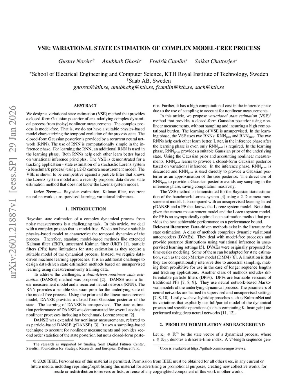 We design a variational state estimation (VSE) method that provides a closed-form Gaussian posterior of an underlying complex dynamical process from (noisy) nonlinear measurements. The complex process is model-free. That is, we do not have a suitable physics-based model characterizing the temporal evolution of the process state. The closed-form Gaussian posterior is provided by a recurrent neural network (RNN). The use of RNN is computationally simple in the inference phase. For learning the RNN, an additional RNN is used in the learning phase. Both RNNs help each other learn better based on variational inference principles. The VSE is demonstrated for a tracking application - state estimation of a stochastic Lorenz system (a benchmark process) using a 2-D camera measurement model. The VSE is shown to be competitive against a particle filter that knows the Lorenz system model and a recently proposed data-driven state estimation method that does not know the Lorenz system model.