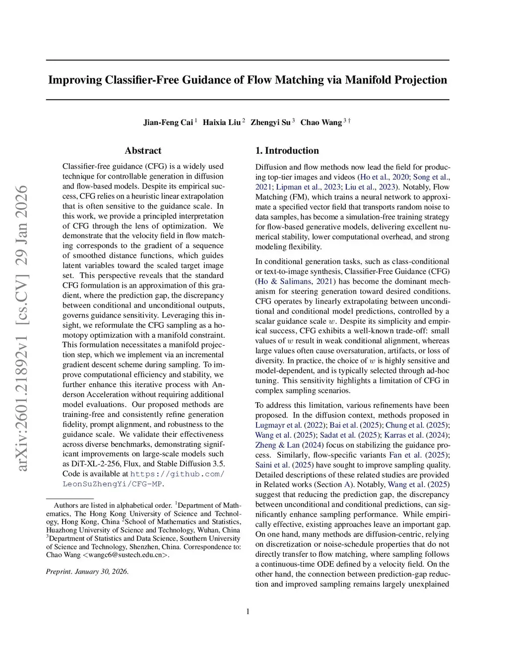 Improving Classifier-Free Guidance of Flow Matching via Manifold Projection