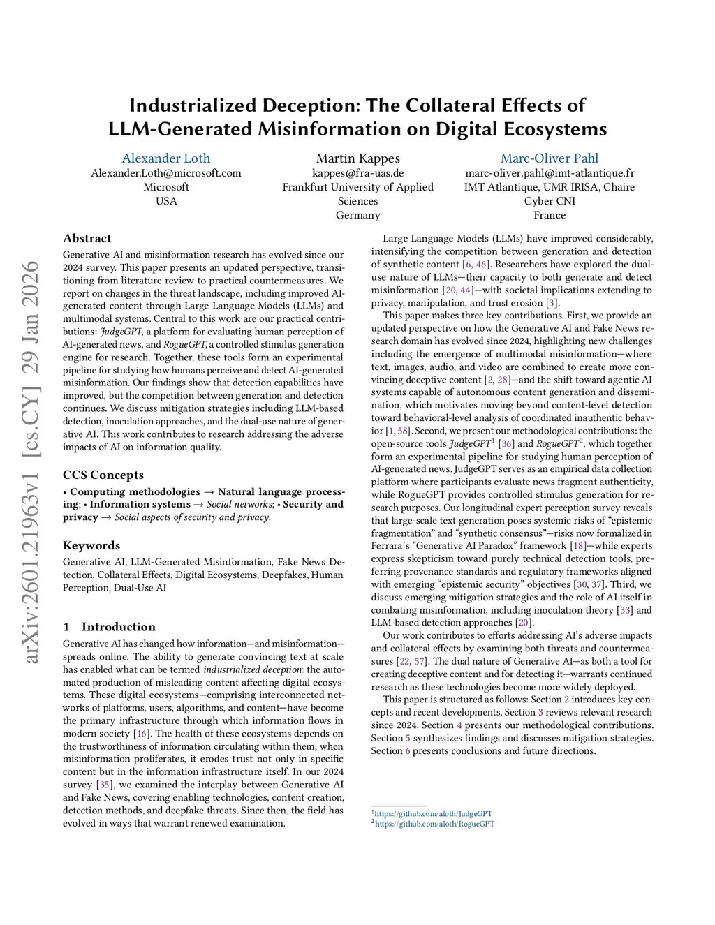 Industrialized Deception: The Collateral Effects of LLM-Generated Misinformation on Digital Ecosystems