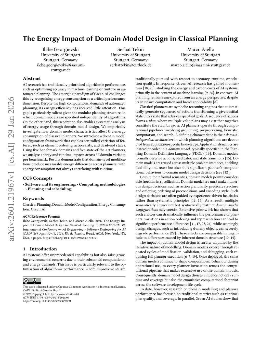 The Energy Impact of Domain Model Design in Classical Planning