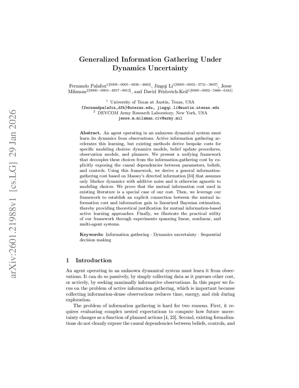 Generalized Information Gathering Under Dynamics Uncertainty
