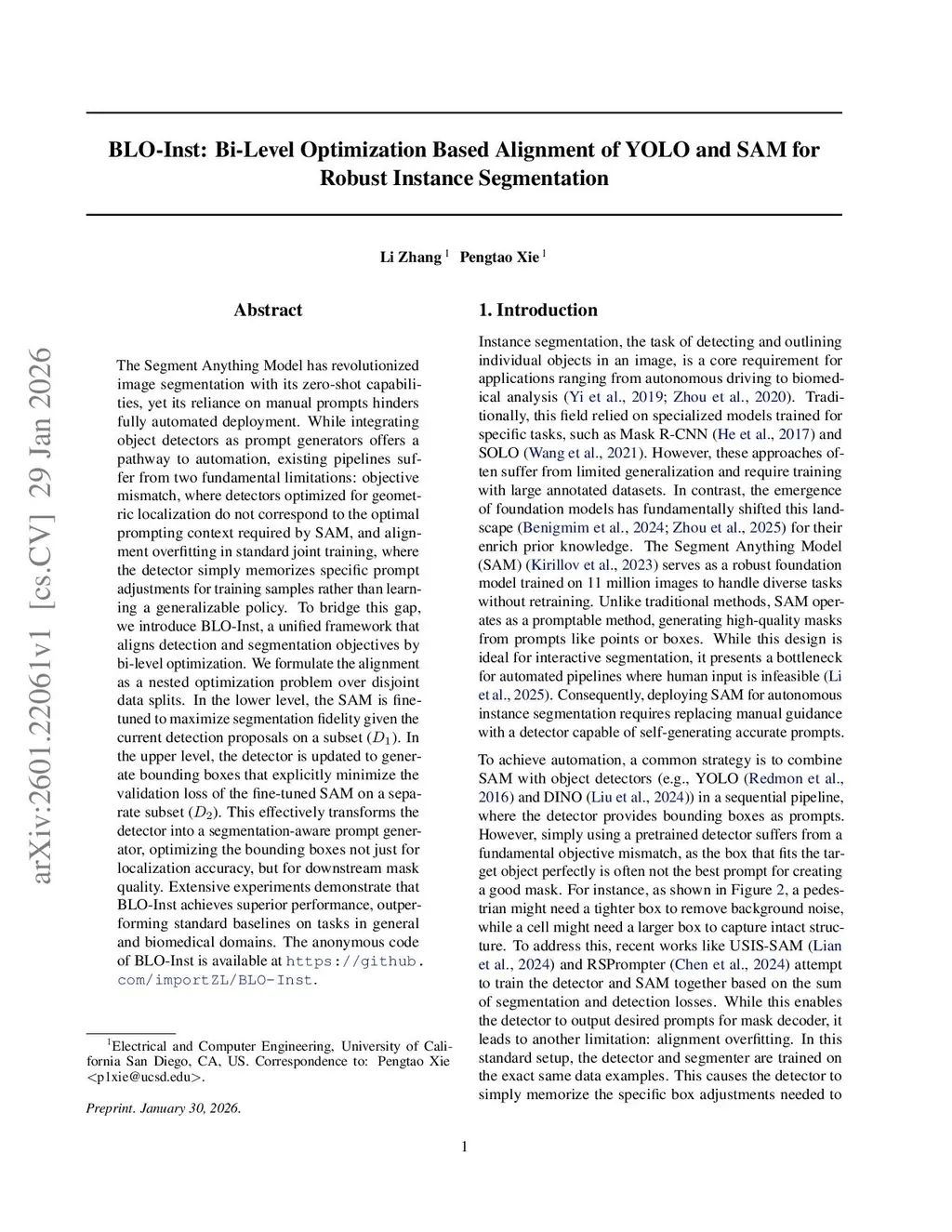 BLO-Inst: Bi-Level Optimization Based Alignment of YOLO and SAM for Robust Instance Segmentation