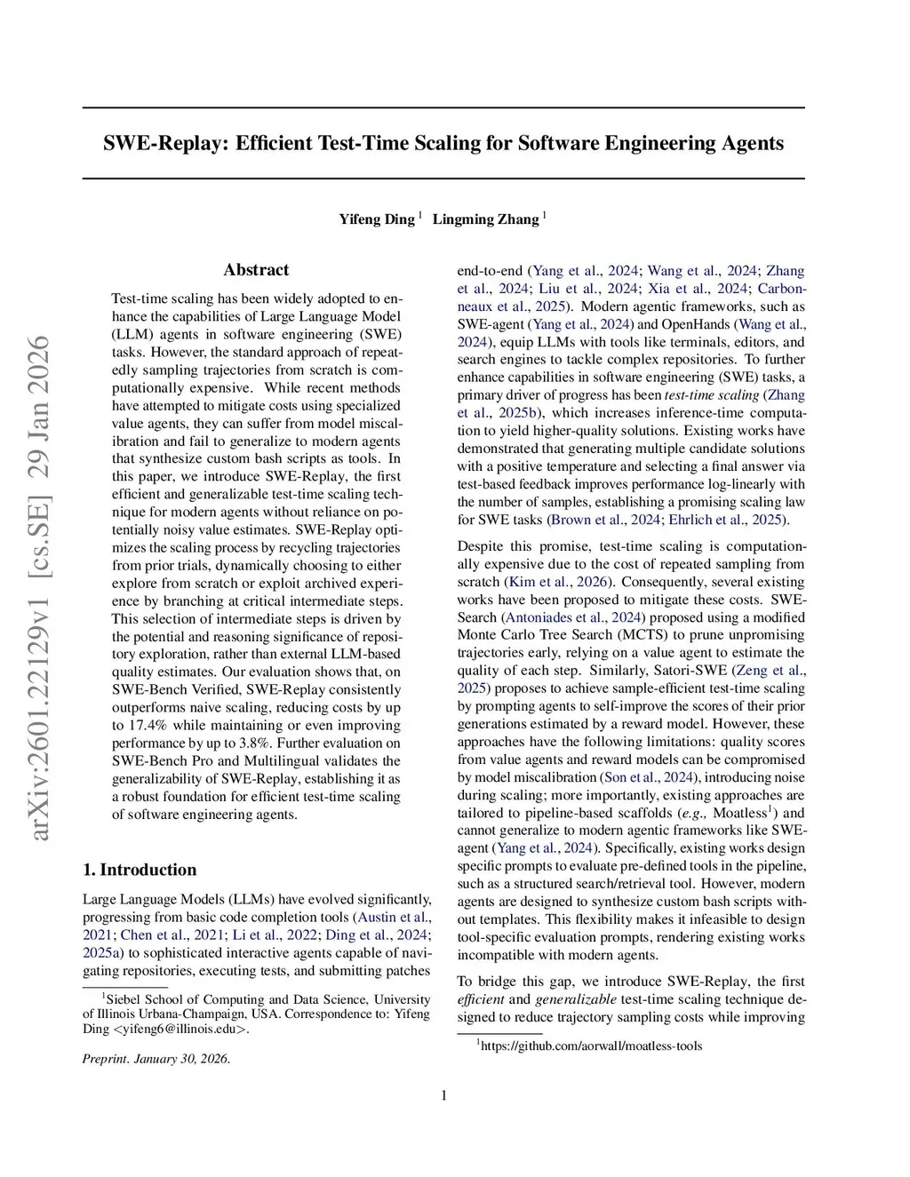 SWE-Replay: Efficient Test-Time Scaling for Software Engineering Agents