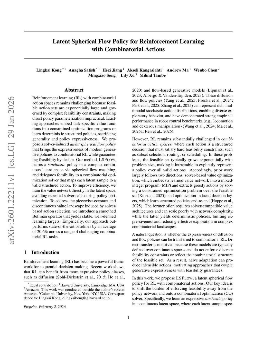 Latent Spherical Flow Policy for Reinforcement Learning with Combinatorial Actions