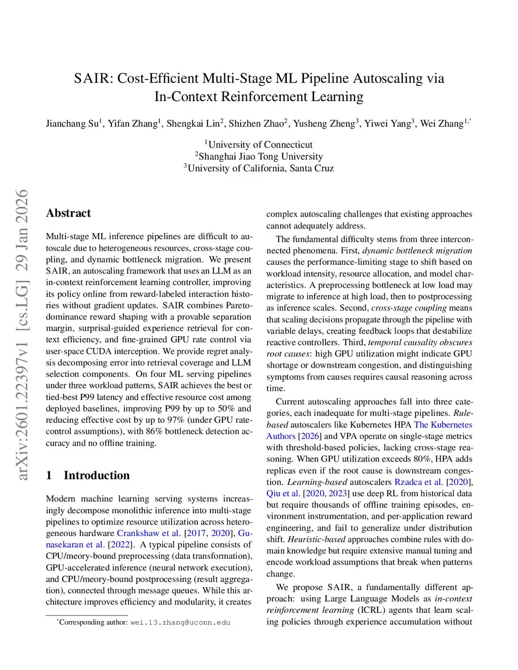 SAIR: Cost-Efficient Multi-Stage ML Pipeline Autoscaling via In-Context Reinforcement Learning