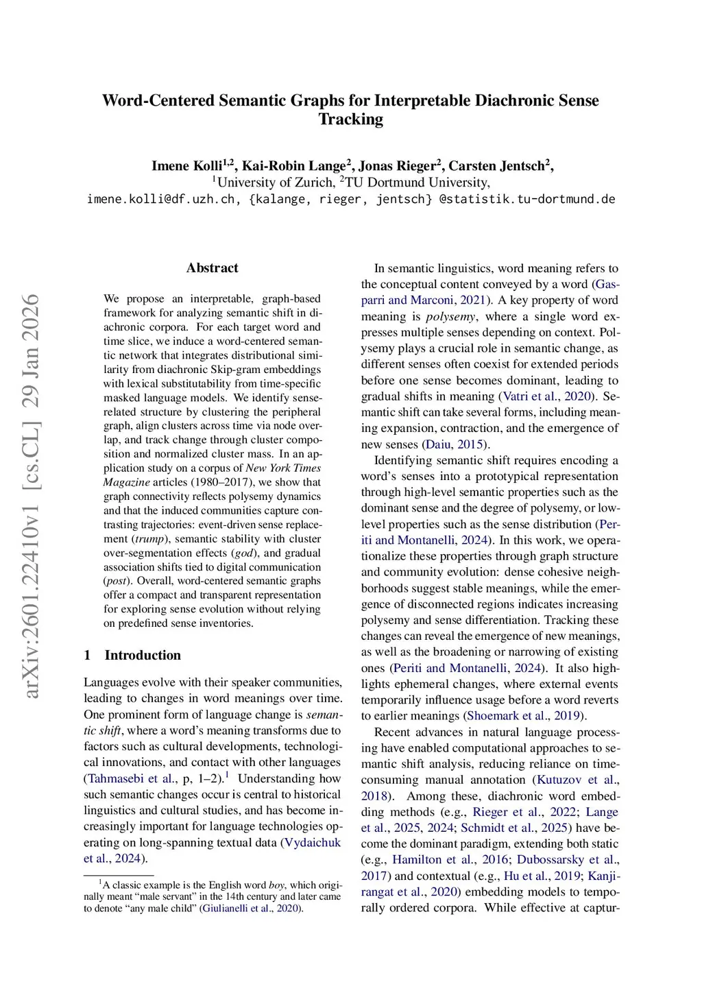 Word-Centered Semantic Graphs for Interpretable Diachronic Sense Tracking