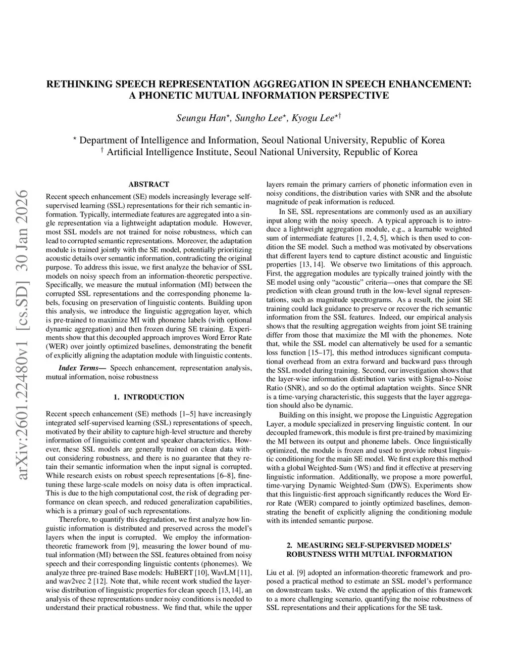 Recent speech enhancement (SE) models increasingly leverage self-supervised learning (SSL) representations for their rich semantic information. Typically, intermediate features are aggregated into a single representation via a lightweight adaptation module. However, most SSL models are not trained for noise robustness, which can lead to corrupted semantic representations. Moreover, the adaptation module is trained jointly with the SE model, potentially prioritizing acoustic details over semantic information, contradicting the original purpose. To address this issue, we first analyze the behavior of SSL models on noisy speech from an information-theoretic perspective. Specifically, we measure the mutual information (MI) between the corrupted SSL representations and the corresponding phoneme labels, focusing on preservation of linguistic contents. Building upon this analysis, we introduce the linguistic aggregation layer, which is pre-trained to maximize MI with phoneme labels (with optional dynamic aggregation) and then frozen during SE training. Experiments show that this decoupled approach improves Word Error Rate (WER) over jointly optimized baselines, demonstrating the benefit of explicitly aligning the adaptation module with linguistic contents.