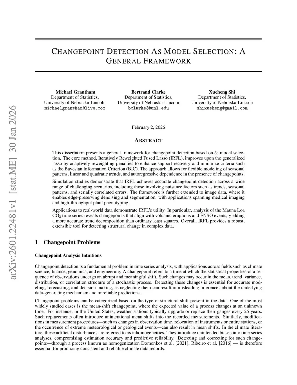 This dissertation presents a general framework for changepoint detection based on L0 model selection. The core method, Iteratively Reweighted Fused Lasso (IRFL), improves upon the generalized lasso by adaptively reweighting penalties to enhance support recovery and minimize criteria such as the Bayesian Information Criterion (BIC). The approach allows for flexible modeling of seasonal patterns, linear and quadratic trends, and autoregressive dependence in the presence of changepoints.Simulation studies demonstrate that IRFL achieves accurate changepoint detection across a wide range of challenging scenarios, including those involving nuisance factors such as trends, seasonal patterns, and serially correlated errors. The framework is further extended to image data, where it enables edge-preserving denoising and segmentation, with applications spanning medical imaging and high-throughput plant phenotyping.Applications to real-world data demonstrate IRFL's utility. In particular, analysis of the Mauna Loa CO2 time series reveals changepoints that align with volcanic eruptions and ENSO events, yielding a more accurate trend decomposition than ordinary least squares. Overall, IRFL provides a robust, extensible tool for detecting structural change in complex data.