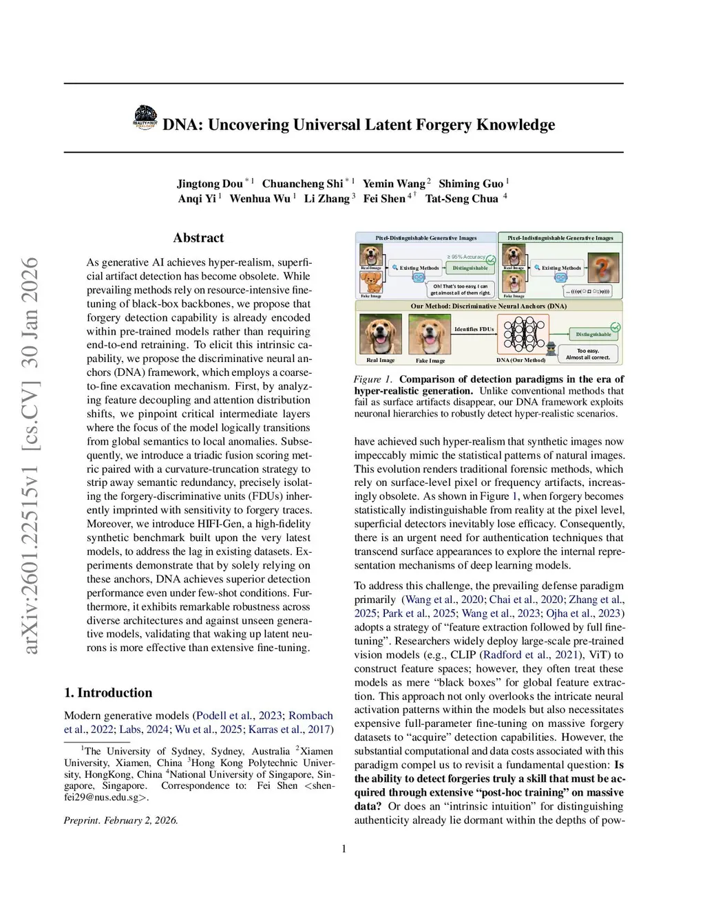As generative AI achieves hyper-realism, superficial artifact detection has become obsolete. While prevailing methods rely on resource-intensive fine-tuning of black-box backbones, we propose that forgery detection capability is already encoded within pre-trained models rather than requiring end-to-end retraining. To elicit this intrinsic capability, we propose the discriminative neural anchors (DNA) framework, which employs a coarse-to-fine excavation mechanism. First, by analyzing feature decoupling and attention distribution shifts, we pinpoint critical intermediate layers where the focus of the model logically transitions from global semantics to local anomalies. Subsequently, we introduce a triadic fusion scoring metric paired with a curvature-truncation strategy to strip away semantic redundancy, precisely isolating the forgery-discriminative units (FDUs) inherently imprinted with sensitivity to forgery traces. Moreover, we introduce HIFI-Gen, a high-fidelity synthetic benchmark built upon the very latest models, to address the lag in existing datasets. Experiments demonstrate that by solely relying on these anchors, DNA achieves superior detection performance even under few-shot conditions. Furthermore, it exhibits remarkable robustness across diverse architectures and against unseen generative models, validating that waking up latent neurons is more effective than extensive fine-tuning.