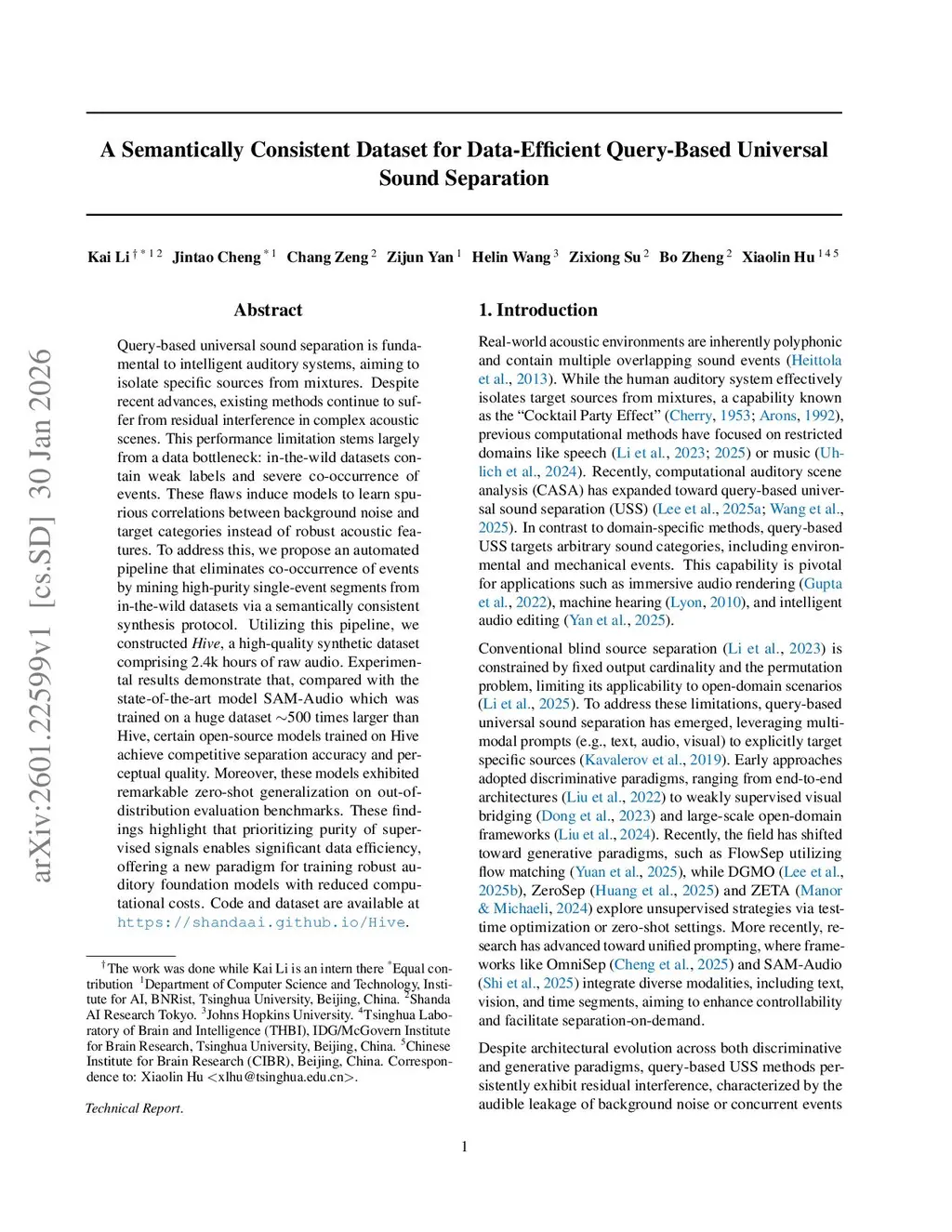 Query-based universal sound separation is fundamental to intelligent auditory systems, aiming to isolate specific sources from mixtures. Despite recent advances, existing methods continue to suffer from residual interference in complex acoustic scenes. This performance limitation stems largely from a data bottleneck: in-the-wild datasets contain weak labels and severe co-occurrence of events. These flaws induce models to learn spurious correlations between background noise and target categories instead of robust acoustic features. To address this, we propose an automated pipeline that eliminates co-occurrence of events by mining high-purity single-event segments from in-the-wild datasets via a semantically consistent synthesis protocol. Utilizing this pipeline, we constructed Hive, a high-quality synthetic dataset comprising 2.4k hours of raw audio. Experimental results demonstrate that, compared with the state-of-the-art model SAM-Audio which was trained on a huge dataset 500 times larger than Hive, certain open-source models trained on Hive achieve competitive separation accuracy and perceptual quality. Moreover, these models exhibited remarkable zero-shot generalization on out-of-distribution evaluation benchmarks. These findings highlight that prioritizing purity of supervised signals enables significant data efficiency, offering a new paradigm for training robust auditory foundation models with reduced computational costs. Code and dataset are available atthis https URL.