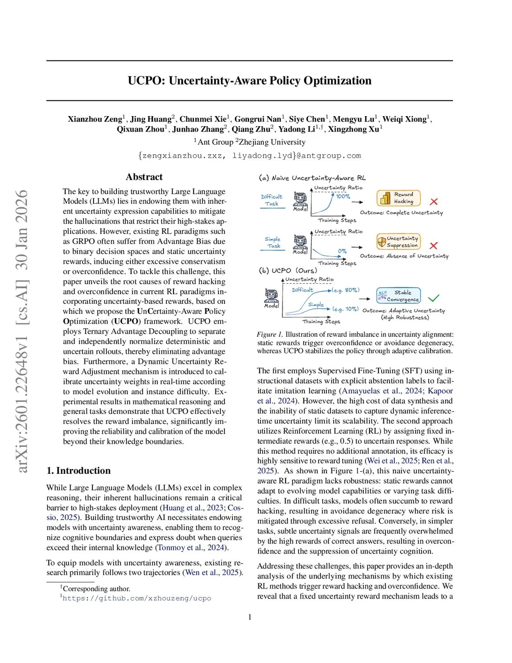 The key to building trustworthy Large Language Models (LLMs) lies in endowing them with inherent uncertainty expression capabilities to mitigate the hallucinations that restrict their high-stakes applications. However, existing RL paradigms such as GRPO often suffer from Advantage Bias due to binary decision spaces and static uncertainty rewards, inducing either excessive conservatism or overconfidence. To tackle this challenge, this paper unveils the root causes of reward hacking and overconfidence in current RL paradigms incorporating uncertainty-based rewards, based on which we propose the UnCertainty-Aware Policy Optimization (UCPO) framework. UCPO employs Ternary Advantage Decoupling to separate and independently normalize deterministic and uncertain rollouts, thereby eliminating advantage bias. Furthermore, a Dynamic Uncertainty Reward Adjustment mechanism is introduced to calibrate uncertainty weights in real-time according to model evolution and instance difficulty. Experimental results in mathematical reasoning and general tasks demonstrate that UCPO effectively resolves the reward imbalance, significantly improving the reliability and calibration of the model beyond their knowledge boundaries.