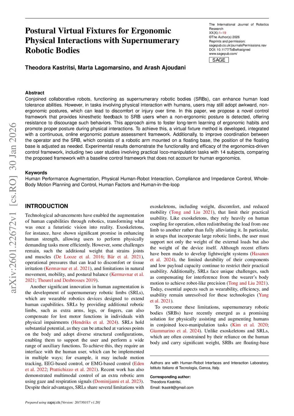 Postural Virtual Fixtures for Ergonomic Physical Interactions with Supernumerary Robotic Bodies