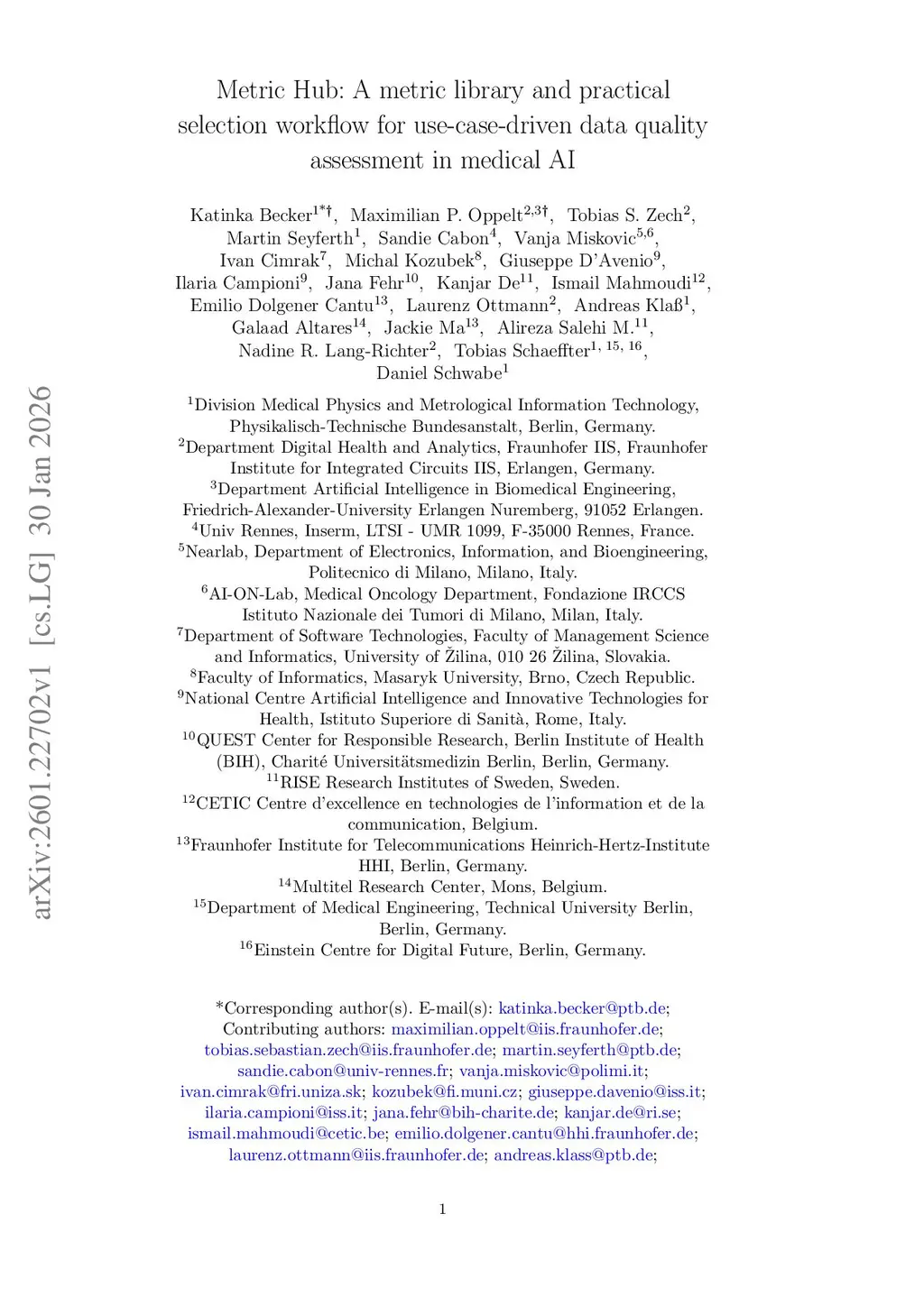 Metric Hub: A metric library and practical selection workflow for use-case-driven data quality assessment in medical AI