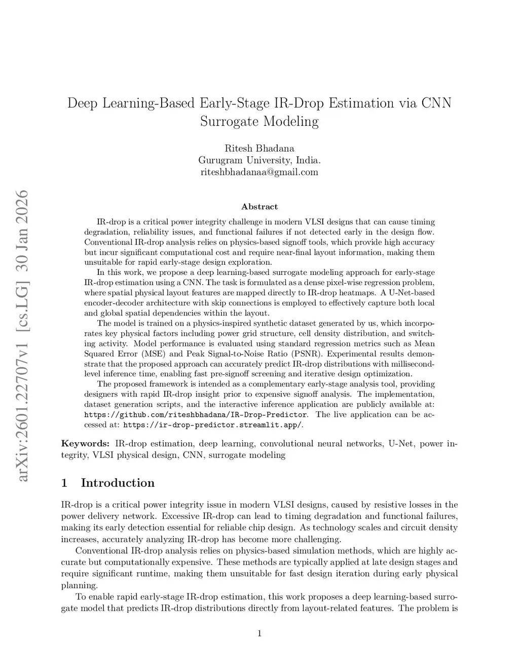 Deep Learning-Based Early-Stage IR-Drop Estimation via CNN Surrogate Modeling