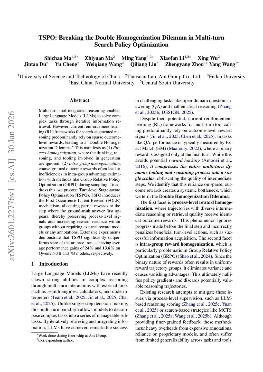 TSPO: Breaking the Double Homogenization Dilemma in Multi-turn Search Policy Optimization