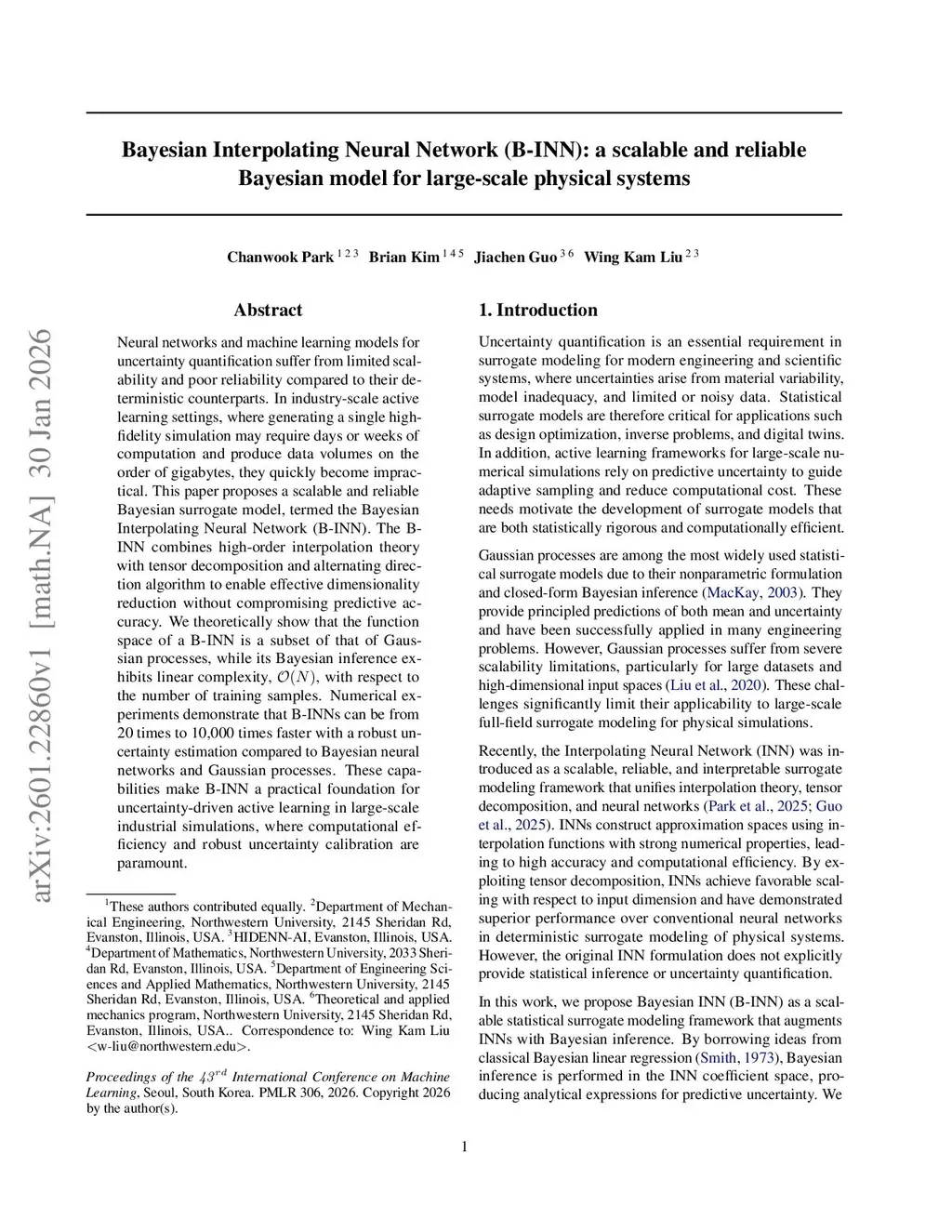 Bayesian Interpolating Neural Network (B-INN): a scalable and reliable Bayesian model for large-scale physical systems