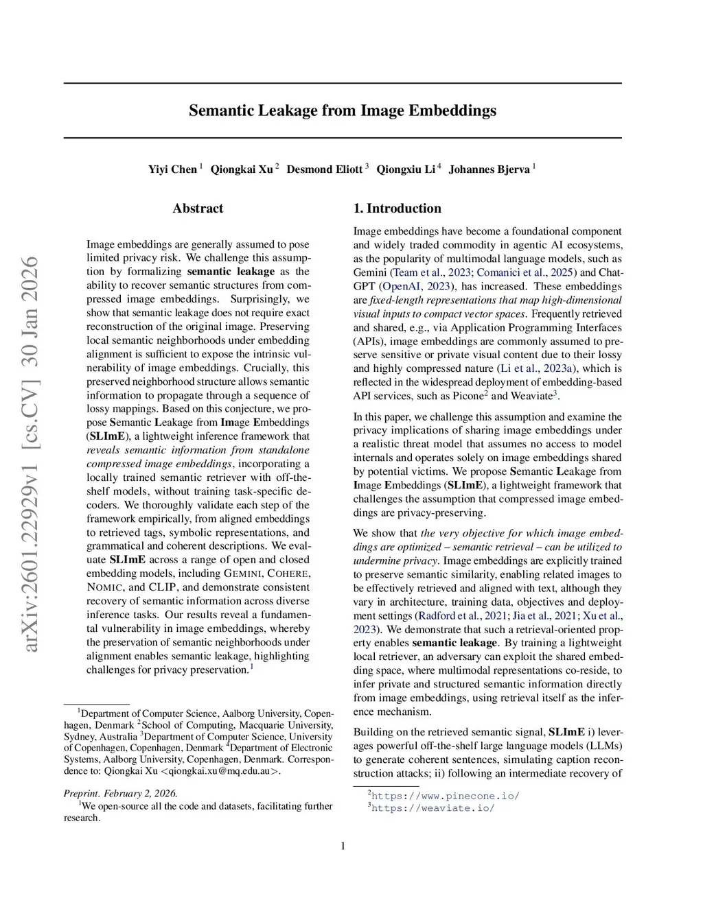 Semantic Leakage from Image Embeddings