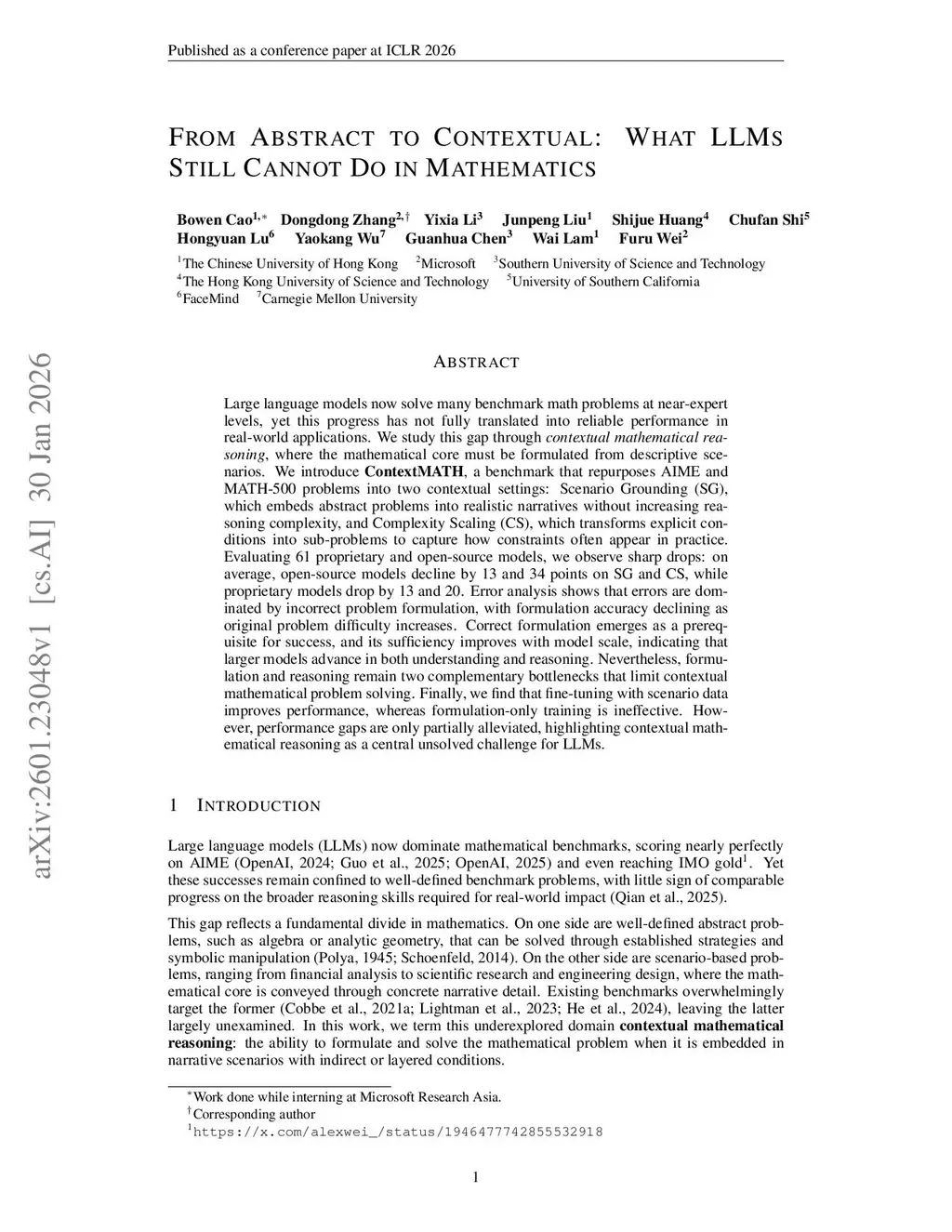 From Abstract to Contextual: What LLMs Still Cannot Do in Mathematics